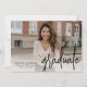 Modern graduation announcement featuring your horizontal photo on the front with "graduate" displayed in a handwritten black script overlay. Personalise the front of the photo graduation announcement with the graduate's name, school name, and graduation year. The simple graduation announcement reverses to display an additional photo with space provided to include the graduate's future plans, graduation details, etc. The 2 photo graduation announcement is perfect for both high school and college graduations!