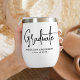 Celebrate the grad in style with this personalised wine tumbler! The graduation wine tumbler features "Graduate" displayed in a handwritten black script. Personalise the custom graduation wine tumbler with the graduate's name, school, and graduation year. This personalised graduation wine tumbler is perfect to give to the high school or college graduate(s) in your life and makes a great personalised graduation party favour!