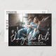 Modern Handwritten Brush Script Change The Date Wedding Postponed Couple Photo Postcard