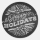Holiday greetings (here „Happy Holidays“) are displayed on this unique and trendy chalkboard style Christmas gift sticker. The handwritten typography looks like chalk on a blackboard, the chalky Christmas elements illustrations (pine branches, berries) are arranged in a decorative circle pattern. Available with matching products.