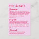 Simple and stylish retro colourful wedding guest info details. With funky warm pink background and red magenta bold and hand written text layout . All the info are customisable as website, transportation, accommodation . Grab it along with other products from this classy hand made retro wedding suite.