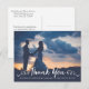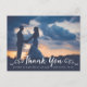 This wedding photo thank you card features a large photo from your wedding with "Thank You" in white handwritten cursive text and your own message on the back.