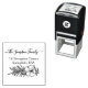 Beautiful return address stamp template featuring a handwritten family name flanked by delicate wildflower branches, with the family address underneath. This charming and elegant design adds a personal touch to envelopes, invitations, holiday cards, and everyday correspondence. Perfect for personalized stationery, wedding return addresses, and modern yet classic mail designs.