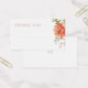 These lovely wedding thank you card features text in a rich ochre colour against a crisp white background. The design includes a lined area for brides who prefer to hand write their cards. The template also allows for the lined area to be replaced with text, if you prefer a printed text version. The colourful floral illustration excudes a joyful tone and a youthful elegance. Couple initials side by side at the back.