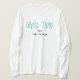 I love this shirt. I had written to the artist asking her if this picture was available on a shirt, and she wrote me back telling me where I could find the shirt. These shirts can be custom made to have a different saying. I loved this saying and went with it. The artist wrote me back later to tell me that she had seen my order go through. How's that for service? Pretty special. It's just as displayed. Perfect!