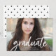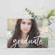 This graduation announcement features the word "graduate" written in a modern white handwritten script. Text fields are fully customisable. Graduation party information can easily be added to the back by deleting the existing background.