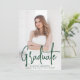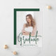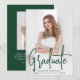 Modern graduation announcement featuring your vertical photo on the front with "Graduate" displayed in a handwritten green script overlay. Personalise the front of the photo graduation announcement with the graduate's name, school name, and graduation year. The simple graduation announcement reverses to display an additional photo with space provided to include the graduate's plans, graduation details, etc. The 2 photo graduation announcement is perfect for both high school and college graduations!