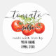 Homemade Tomato salsa Label with round shape sticker features Homemade with love by "your Name", Salsa type, and statement homemade with love You can edit and customise this vanilla extra label according to your needs.