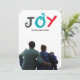 Vibrant colored letters, trees, holly and cancy canes in a cheerful message suitable for a non-religious holiday greeting. I especially liked it on the black background which made the design pop.