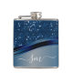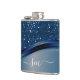 Handwritten Monogram Navy Blue Metal Glitter Hip Flask