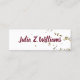 A simple and professional white contact card with splattered faux glitter image, and with fields for name (burgundy handwritten font style)), phone number, and email... for an elegant business woman