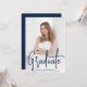 Modern graduation party invitation featuring your vertical photo on the front with "Graduate" displayed in a handwritten navy script overlay. Personalise the front of the photo graduation party invite with the graduate's name, school name, and graduation year. The simple graduation party invitation reverses to display your party details in white lettering with a solid navy background. The photo graduation party invite is perfect for both high school and college graduates!