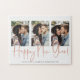 Handwritten New Year Copper Rose Gold Marble Puzzle in a font that is elegant and evokes a romantic handwritten feel. On the back is a trendy coppery rose gold foil style veins running through classic marble. Designed to use three of your favorite photos for added customization.