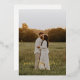 A simple but stylish save the date announcement with your favourite vertical/portrait photo overlaid with "save the date" in gold foil casual handwritten font.
