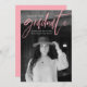 Modern graduation announcement card featuring your graduate's favourite photo on the front with "Graduate" in a pink handwritten script. Personalise the front of the announcement by adding the graduate's name, school name, and graduation year. The trendy graduation announcement reverses to display an additional 3 photos with space for text such as future plans, graduation details, party details, etc. The 4 photo graduation announcement is perfect for both high school and college graduates.