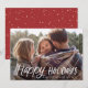 Simply stylish and festive. Featuring a handwritten style greeting with your photo and text. There is a fading gradient overlay over the photo to highlight your text. The back showcases a hand-drawn snow pattern in red for an extra special touch.