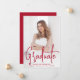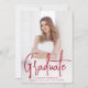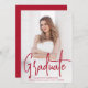 Modern graduation announcement featuring your vertical photo on the front with "Graduate" displayed in a handwritten red script overlay. Personalise the front of the photo graduation announcement with the graduate's name, school name, and graduation year. The simple graduation announcement reverses to display an additional photo with space provided to include the graduate's plans, graduation details, etc. The 2 photo graduation announcement is perfect for both high school and college graduations!