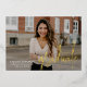 Modern graduation announcement featuring your horizontal photo on the front with "Graduate" displayed in a handwritten gold foil script overlay. Personalize the front of the photo graduation announcement with the graduate's name, school name, and graduation year. The foil graduation announcement reverses to display an additional photo with space provided to include the graduate's future plans, graduation details, etc. The 2 photo graduation announcement is perfect for both high school and college graduations!