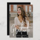 Modern graduation announcement featuring your vertical photo on the front with "Graduate" displayed in a white handwritten script overlay. Personalize the front of the photo graduation announcement with the graduate's name, school name, and graduation year. The simple graduation announcement reverses to display an additional photo with space provided to include the graduate's future plans, graduation details, etc. The 2 photo graduation announcement is perfect for both high school and college graduations!