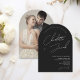 Invite guests to your special day with the Black White Modern Chic Minimalist Script Arch Custom Engagement Photo Wedding Invitation! Featuring an elegant arch-shaped design, minimalist script, and space for your engagement photo, this invitation is perfect for stylish and personalised wedding invitations. Perfect for black tie weddings.