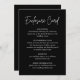 The "Handwritten Script Black Wedding Enclosure Card" is a stunning blend of elegance and personalisation. With its rich black background and graceful handwritten script, this card offers a sophisticated way to share essential details such as directions, accommodations, or special notes. Perfect for modern couples, its chic design complements any wedding invitation suite while adding a heartfelt touch. This card ensures your guests feel cherished and informed, making it a memorable addition to your celebration.