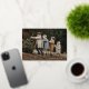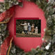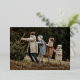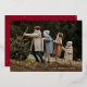 Modern holiday photo cards featuring your horizontal photo with "Merry Christmas" displayed in a handwritten gold foil script. Personalise the foil Christmas photo card with your family name and the year in white lettering. The single photo holiday card reverses to display a burgundy background with subtle white dots.