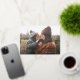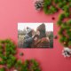 Festive Hanukkah holiday photo card features your favourite horizontal or landscape orientated photo in full bleed, with "Happy Hanukkah" overlaid in gold foil handwritten cursive script typography. Personalise the front of the card with your names and the year.