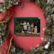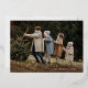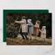 Modern holiday photo cards featuring your horizontal photo with "Merry Christmas" displayed in a handwritten gold foil script. Personalise the foil Christmas photo card with your family name and the year in white lettering. The single photo holiday card reverses to display a green background with subtle white dots.