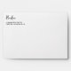 Stylish white envelope with left aligned return address in simple black script and sans serif fonts.