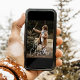 Modern holiday photo cards featuring your vertical photo with "Merry Christmas" displayed in a white handwritten script. Personalize the photo Christmas card with your family name and the year. The single photo holiday card reverses to display an additional photo and a caramel-brown background with subtle white dots.