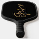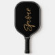 Modern personalised custom colour pickleball paddle for the left-handed pickler featuring a name shown in an editable modern, trendy handwritten script in changeable black and gold colours to create your own custom look for a pickleball enthusiast. COLOR CHANGES:  Change any text or background colours by clicking on the EDIT tab in the PERSONALIZE section. ASSISTANCE:  For help with design modification or personalisation, colour change, resizing, transferring the design to another product or if you would like coordinating items, contact the designer BEFORE ORDERING via the Zazzle Chat MESSAGE tab below or email makeitaboutyoustore@gmail.com.