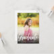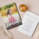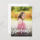 This graduation party invitation features an elegant handwritten script font with a photo of the graduate. The photo is for placement purposes only and can be replaced with any photo of your choice. All text on the front and back of the card can be customised to include all the details of your graduation party.