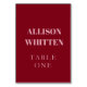 Handwritten Script Pink & Red Custom Wedding Table Number
