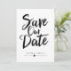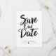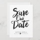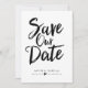 This design features the words "save the date" in bold black handwritten script. Couple's names and wedding details are displayed below and can be customised.