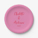 Handwritten Script Whimsy Pink Red Custom Wedding Paper Plate