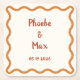 Handwritten Whimsical Wavy Border 70s Wedding Square Paper Coaster
