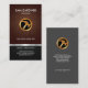 A modern simple professional design for the jack of all trades, the handyman. This card features a dual toned wood panel, the top is a brownish grain whilst the bottom part is black. Both portions are demarcated by a faux silver stripe that runs across the face of the card. In the top portion, lies your prestigious name and position. In the midsection, there is a faux gold icon logo of a hammer that you can use alongside a slogan. Towards the bottom of the card, in the black grains, you have all your contact details.