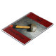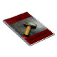 This design features a yellow and red handled sledgehammer resting on a distressed black wood workbench, bordered in deep maroon. It’s one of three coordinating notebooks, each showcasing original hand tool photography by JLW_PHOTOGRAPHY.