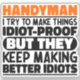Funny Handyman Sayings "Handyman I Try To Make Things Idiot Proof But They Keep Making Better Idiots". Grab this Funny Handyman design as a funny gifts for an awesome mum, dad or friend.