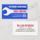 Promote your 24-hour plumbing or handyman services with this eye-catching business card. Designed with a bold and easy-to-read phone number for quick access in emergencies, this card features a sleek silhouette of a wrench. The stylish blue, white with red accents colour palette ensures your contact details stand out, making it perfect for plumbers and handymen who want to leave a lasting impression.