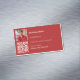 A brick red background. Personalise and add Your photo, name, text, contact info and your own url to your website or your social media account to the QR code. White text.
