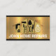 A faux gold cover features a creative rooftop building that incorporate handyman construction tools. Each handyman tool represents some of the service that you might offer e.g. The hammer-measuring tape can represent remodeling works, the roller brush-ladder for painting, the water drop-wrench for plumbing works and the bulb for electrical service. Below all this is the business name "HOME REPAIRS" in white which coincides with the bulb icon in the building.