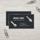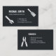 A business card with silhouettes icons of useful handyman tools which include screwdriver, spanner and wire cutter. Classy black and white colour palette. Personalise with your business information in the text templates provided.