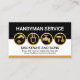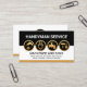 A black and white layered cover is encapsulated by a brown stripe near the base of the card. Over at the top you have an array of gold handyman tools which can represent some of the services that you offer. Just above this is the job title "HANDYMAN SERVICE" which you can change. Near the base of the card lies the business name and its contact details.