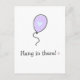 NewParkLane - Cute encouragement postcard to a loved one who is battling cancer or another illness, featuring a cute purple balloon with a soft blue heart and quote: 'Hang in there!' in a fun script typography. The backside has a cute little pink heart and says: 'Stay Strong. Keep Fighting. Together we will beat this!'