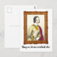 This postcard features a lithograph of a woman saying, "Hang on, let me overthink this."
