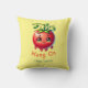 A playful and quirky pillow with the message 'Hang on little tomato'. on one side One Happy Tomato on the other. This pillow exudes a fun and lighthearted vibe, perfect for garden sheds patios. Ideal for those who enjoy unique and whimsical designs. Relevant for occasions like picnics, casual gatherings, and summer parties.