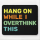 "Hang On While I Overthink This" bright pastel text on a black background.