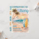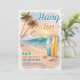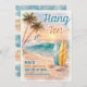 Kick up some coastal fun with this “Hang Ten” retro surf beach birthday invitation — an awesome pick for any kid who’s ready to celebrate surfer-style! This hand-painted watercolor design features a dreamy tropical beach at sunset, complete with surfboards in the sand, seashells, rolling ocean waves, swaying palm trees, a playful dolphin leaping through the surf, and a seagull cruising the sky. The vibrant turquoise and burnt orange palette adds that nostalgic surf shack vibe.
