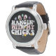 Hangin' With My Chicks Easter Bunny Groovy Retro Watch